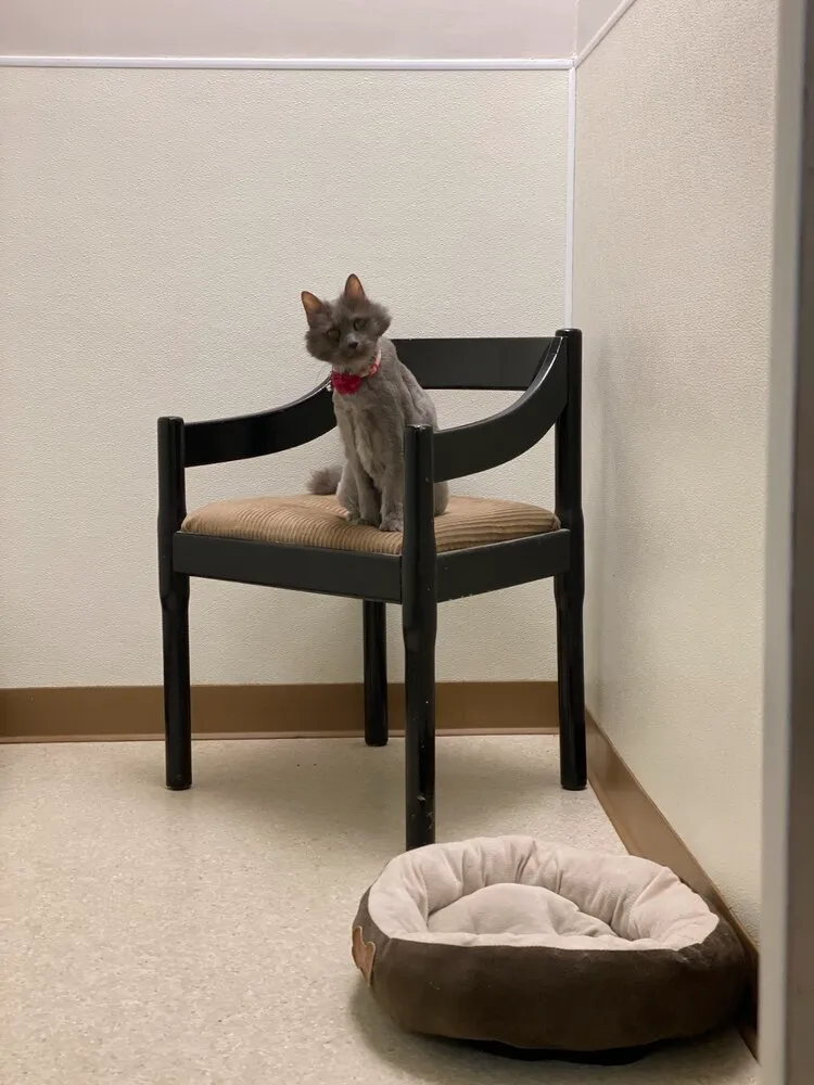 Feline guests all have access to their own rooms. They have a choice between studio apartment style and private suites. The private suites are the larger of the choices. Cats will be given room service twice daily, and all guests are loved and cuddled frequently throughout the day. Playtime can also be added to any kitty’s stay.