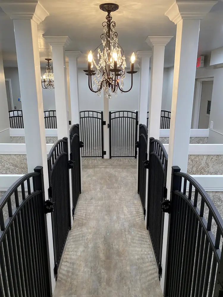 Canine guests have access to heated and air-conditioned indoor and outdoor runs so they can exercise and get some fresh air. Guests who stay in luxury suites enjoy personal walks, one-on-one play time, room service as requested, and two treats as permitted by the owners. Grand Suites are larger than luxury rooms and can be used for large dogs and families with multiple canines.